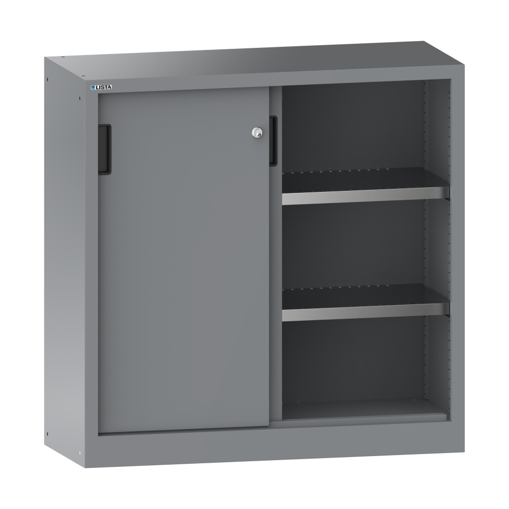 Armoire à portes coulissantes avec 2 portes en tôle pleine (LxPxH) 1000x400x1000mm 2 rayons KEY Lock Gris pigeon NCS S 4502-B