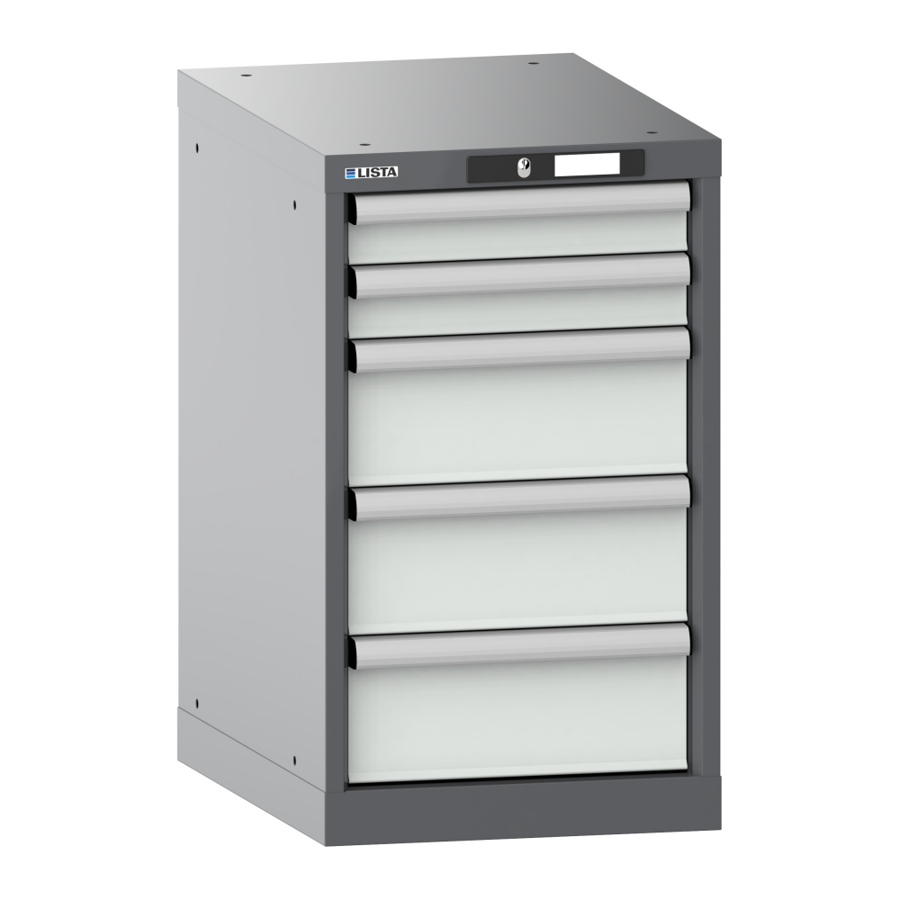 Armoire à tiroirs 18x27E (LxPxH) 411x572x700mm 5 tiroirs (2x75/3x150) 75kg RFID Lock Gris métallique NCS S 6502-B / Gris clair RAL 7035