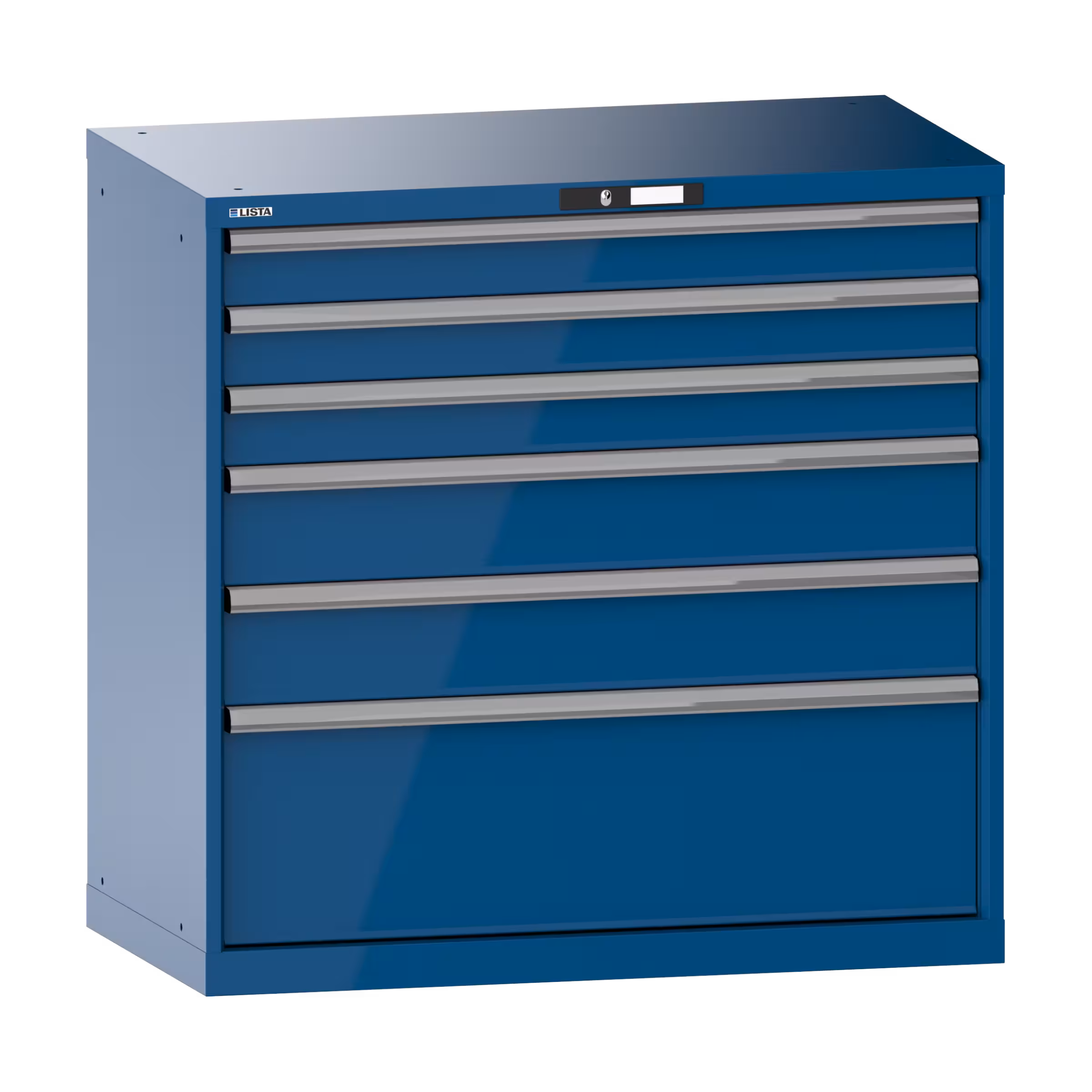 Armoire à tiroirs 54x27E (LxPxH) 1023x572x1000mm 6 tiroirs (3x100/2x150/1x300) 200kg CODE Lock Bleu capri RAL 5019