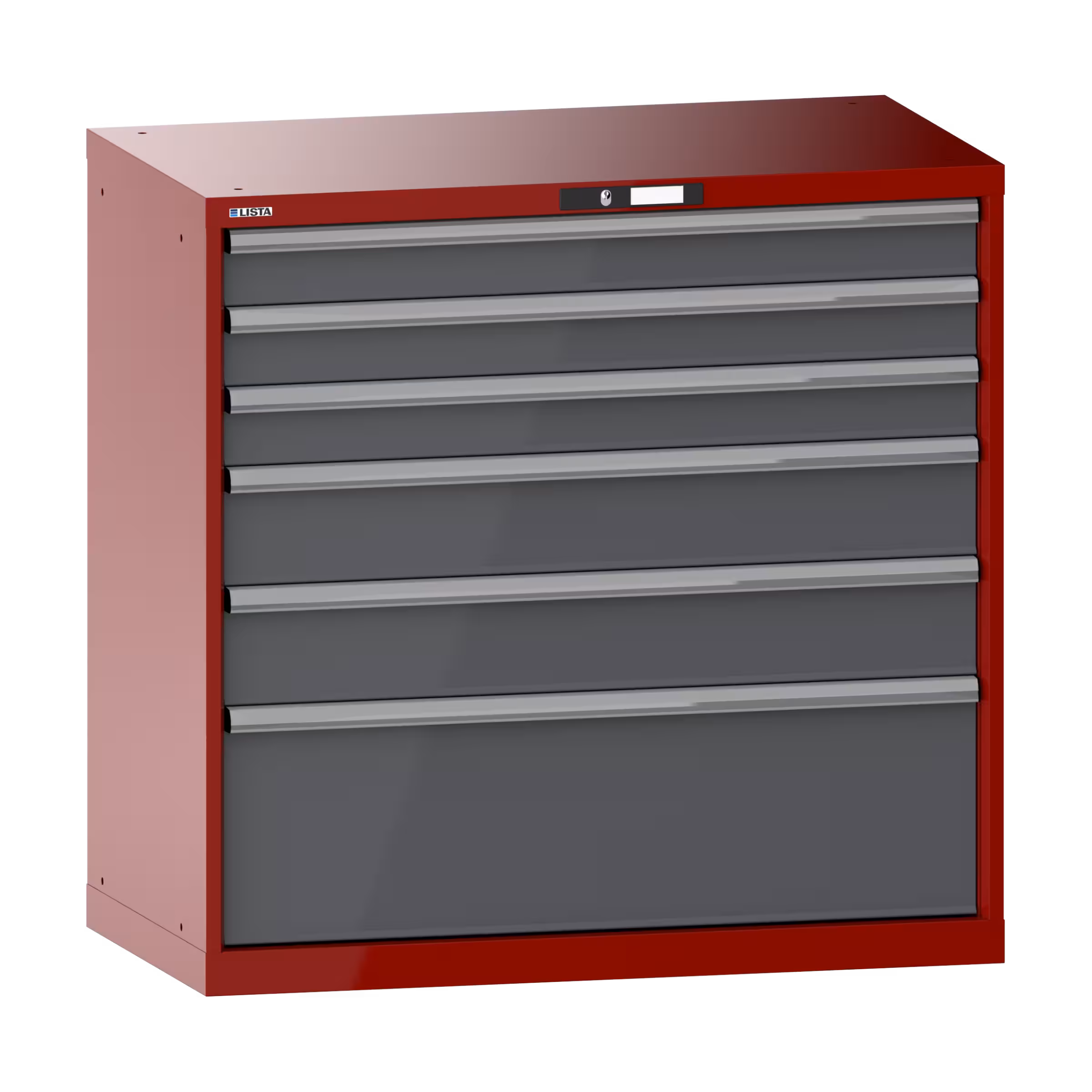 Armoire à tiroirs 54x27E (LxPxH) 1023x572x1000mm 6 tiroirs (3x100/2x150/1x300) 200kg CODE Lock Rouge rubis RAL 3003 / Gris métallique NCS S 6502-B