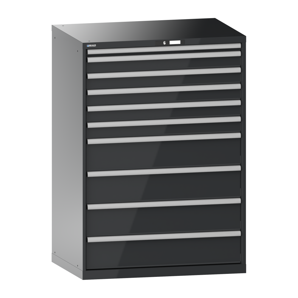 Armoire à tiroirs 54x36E (LxPxH) 1023x725x1450mm 10 tiroirs (1x50*/5x100/4x200) *75/200kg AUTO Lock Gris anthracite RAL 7016