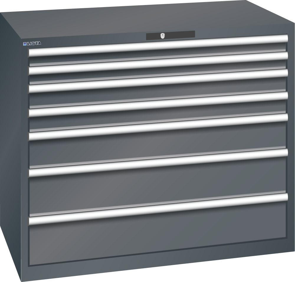 Armoire à tiroirs 64x36E (LxPxH) 1193x725x1000mm 7 tiroirs (2x75/2x100/1x150**/2x200**) 75/**200kg CODE Lock Gris anthracite RAL 7016
