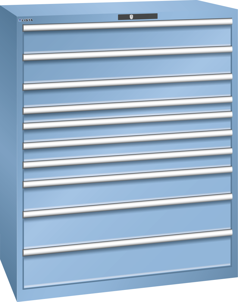 Armoire à tiroirs 64x36E (LxPxH) 1193x725x1450mm 10 tiroirs (2x150/1x125/1x75/3x100/1x150/2x200) 200kg AUTO Lock Bleu clair RAL 5012