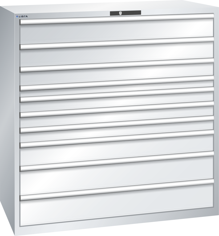 Armoire à tiroirs 78x36E (LxPxH) 1431x725x1450mm 10 tiroirs (2x150/1x125/1x75/3x100/1x150/2x200) 200kg AUTO Lock Gris clair RAL 7035
