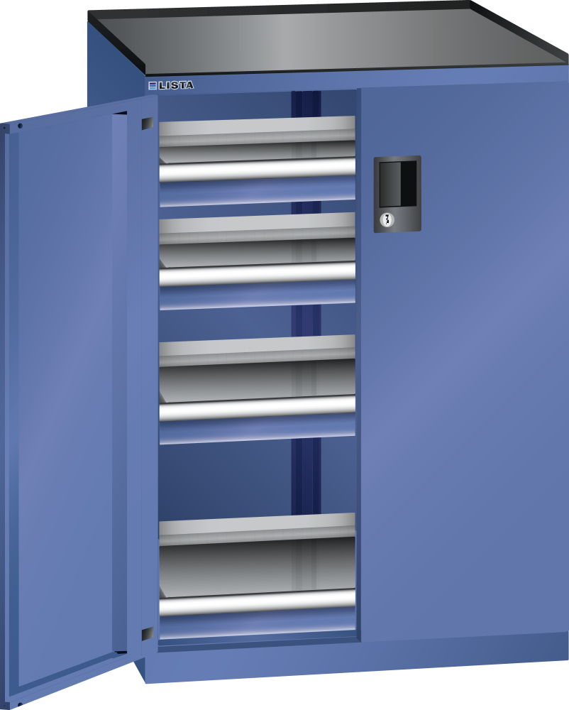 Armoire à tiroirs avec portes battantes 36x27E (LxPxH) 717x600x1020mm 4 tiroirs (75kg) RFID Lock Bleu gentiane RAL 5010