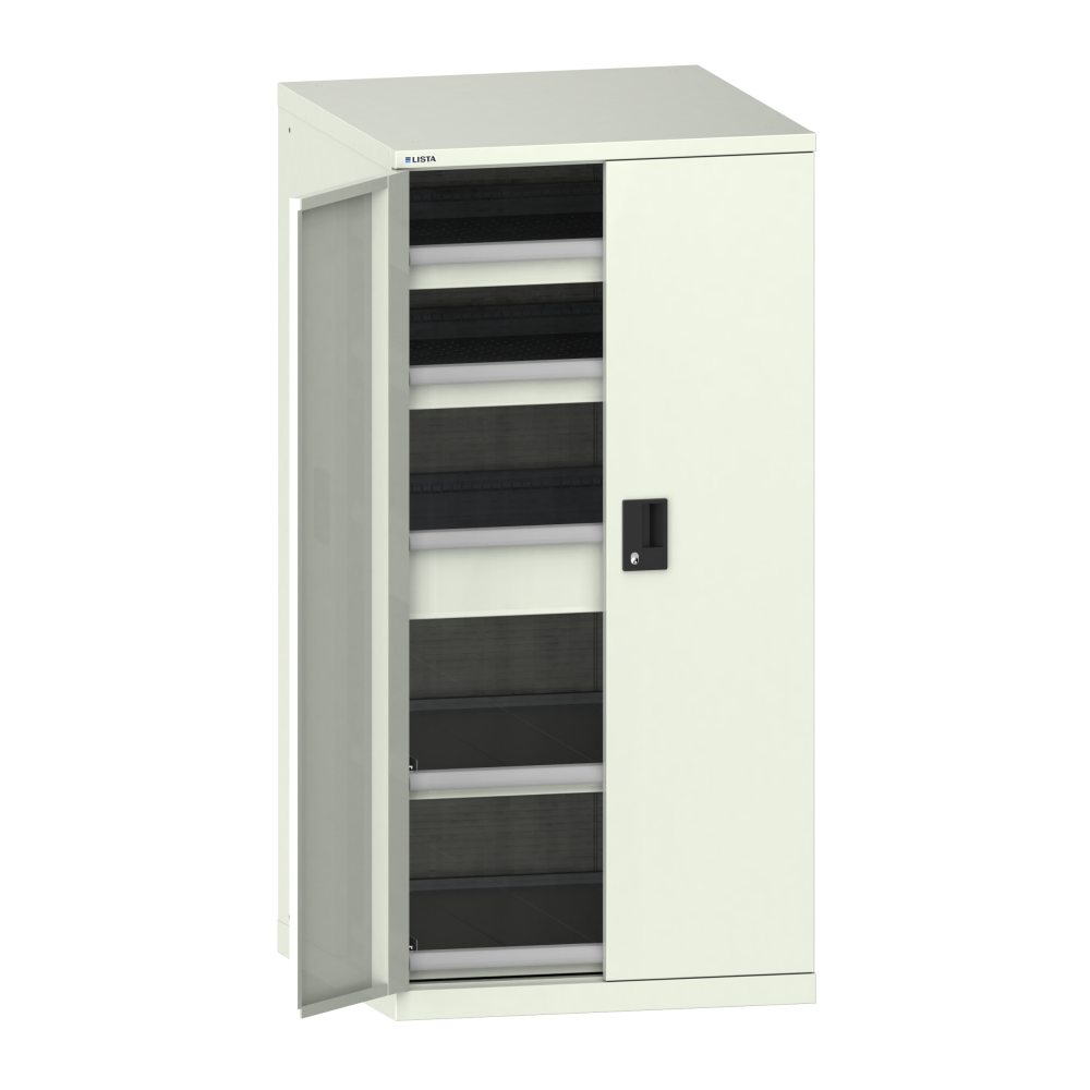 Armoire à tiroirs avec portes battantes 36x36E (LxPxH) 717x753x1450mm 3 tiroirs (75kg), 2 rayons extensibles (75kg) KEY Lock Blanc gris RAL 9002