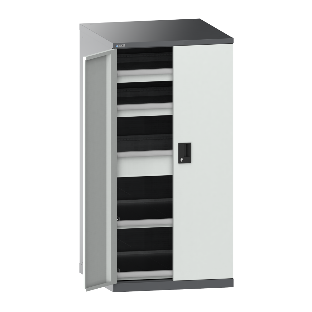 Armoire à tiroirs avec portes battantes 36x36E (LxPxH) 717x753x1450mm 3 tiroirs (75kg), 2 rayons extensibles (75kg) KEY Lock Gris métallique NCS S 6502-B / Gris clair RAL 7035