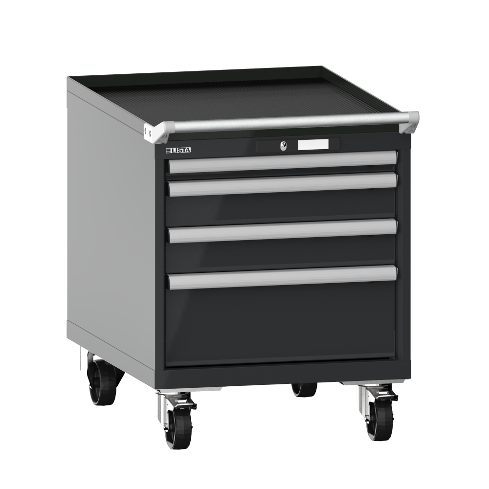 Armoire à tiroirs mobile 27x36E (LxPxH) 564x725x723mm 4 tiroirs (1x50/2x100/1x200) 75kg roues en nylon Ø100mm KEY Lock Gris anthracite RAL 7016