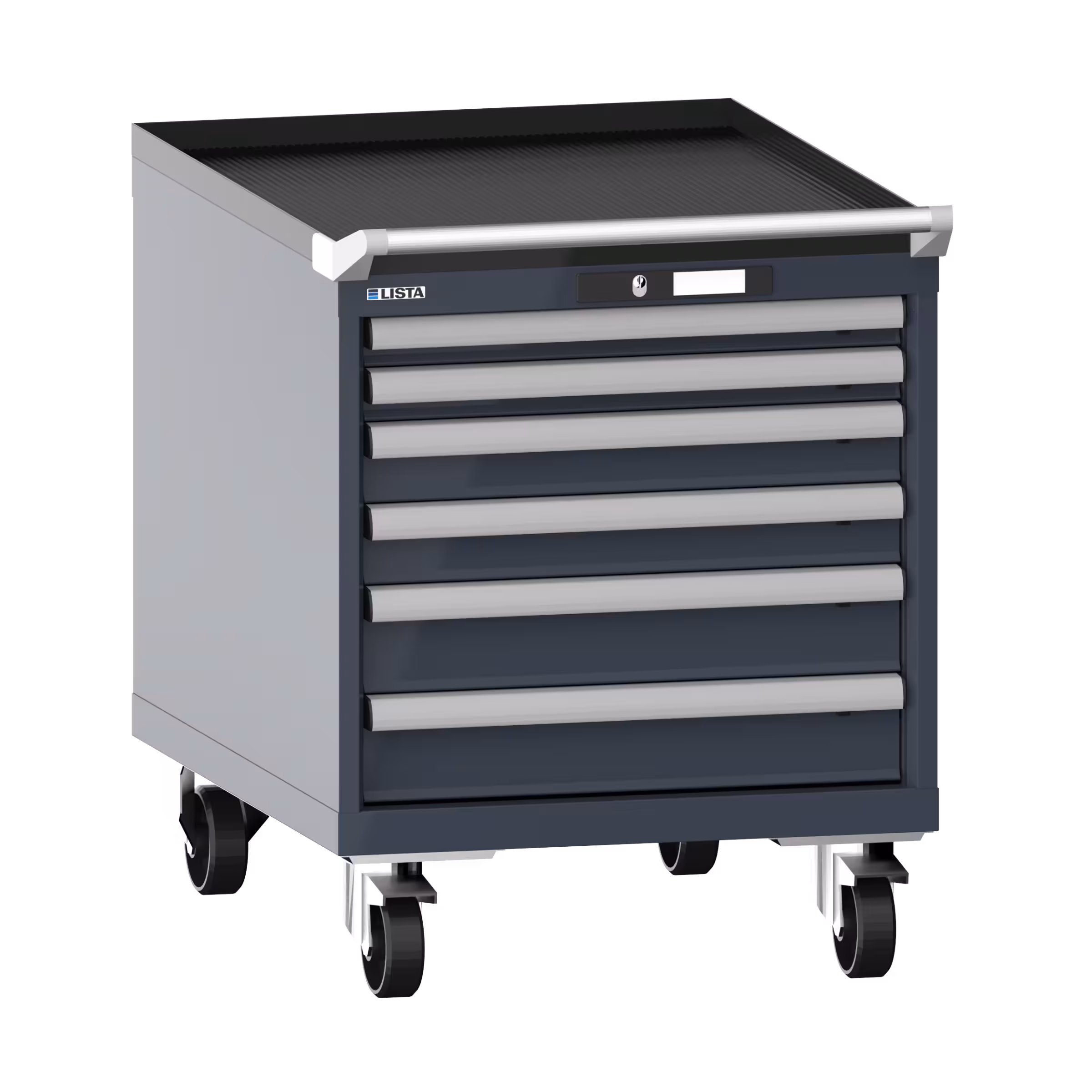 Armoire à tiroirs mobile 27x36E (LxPxH) 564x725x723mm 6 tiroirs (2x50/2x75/2x100) 75kg roues en nylon Ø100mm KEY Lock Gris ardoise RAL 7015