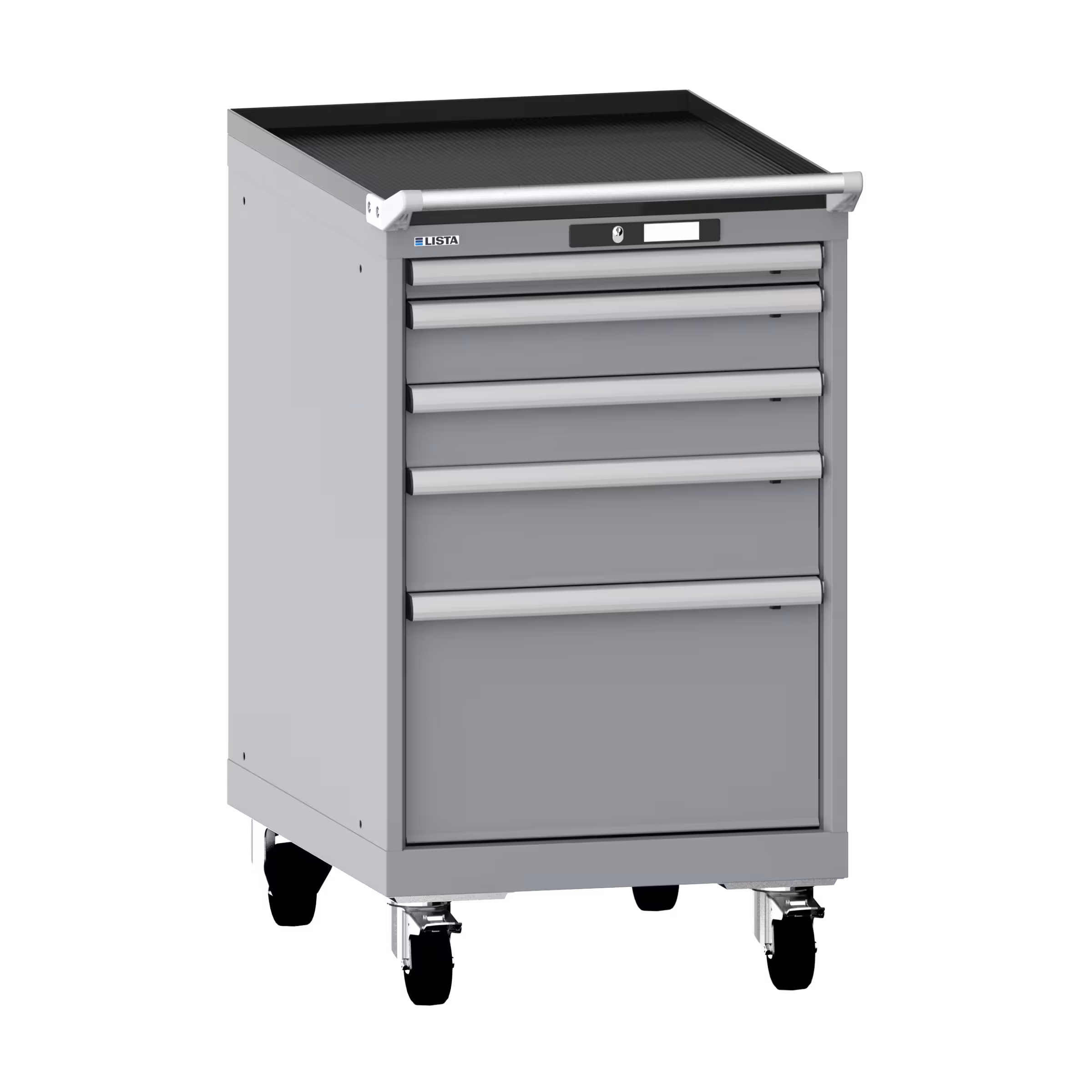 Armoire à tiroirs mobile 27x36E (LxPxH) 564x725x990mm 5 tiroirs (1x50/2x100/1x150/1x300) 75kg roues en nylon Ø100mm KEY Lock Gris pigeon NCS S 4502-B