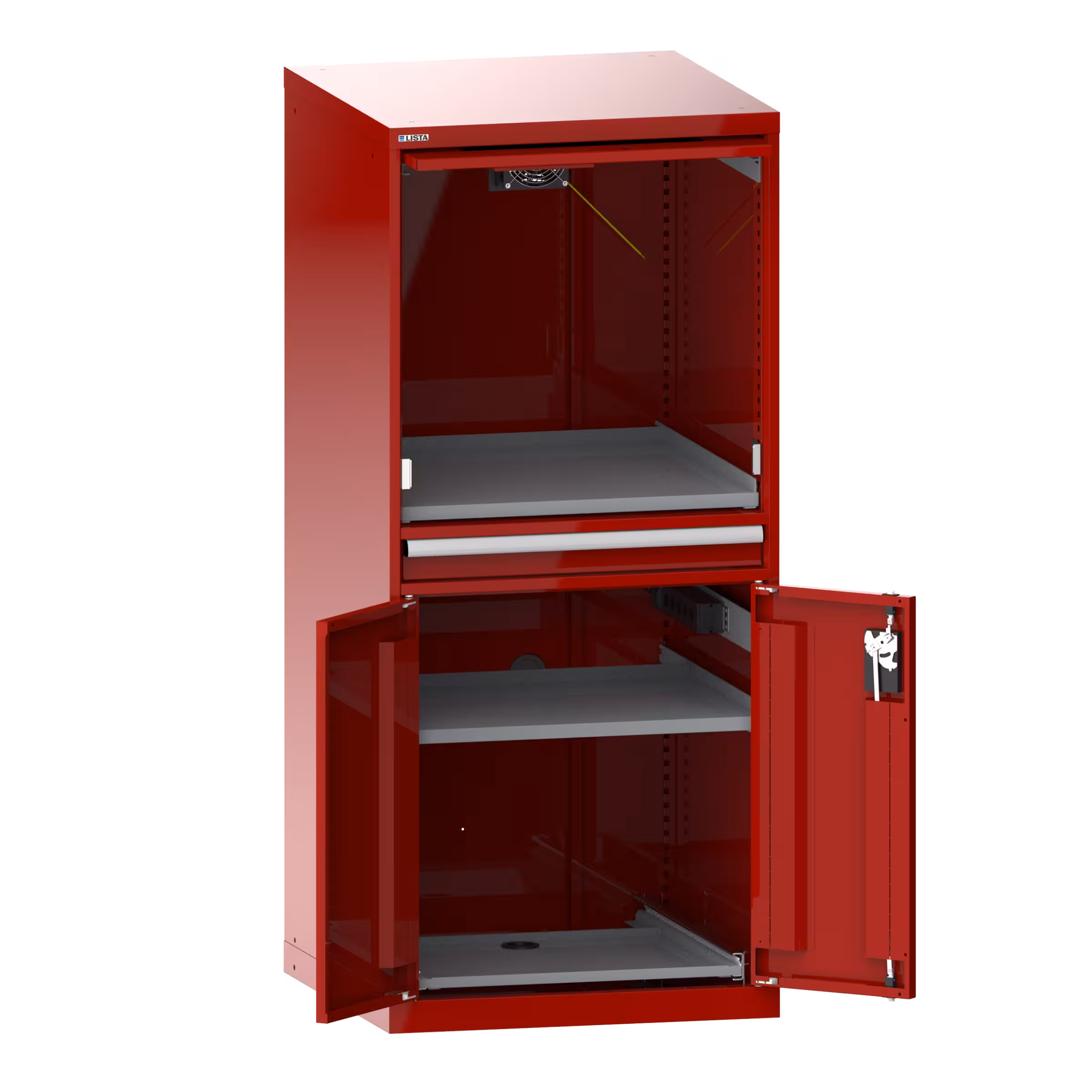 avec rideaux, tiroirs, portes d'écran et battantes pour la protection du matériel de valeur et des documents importants