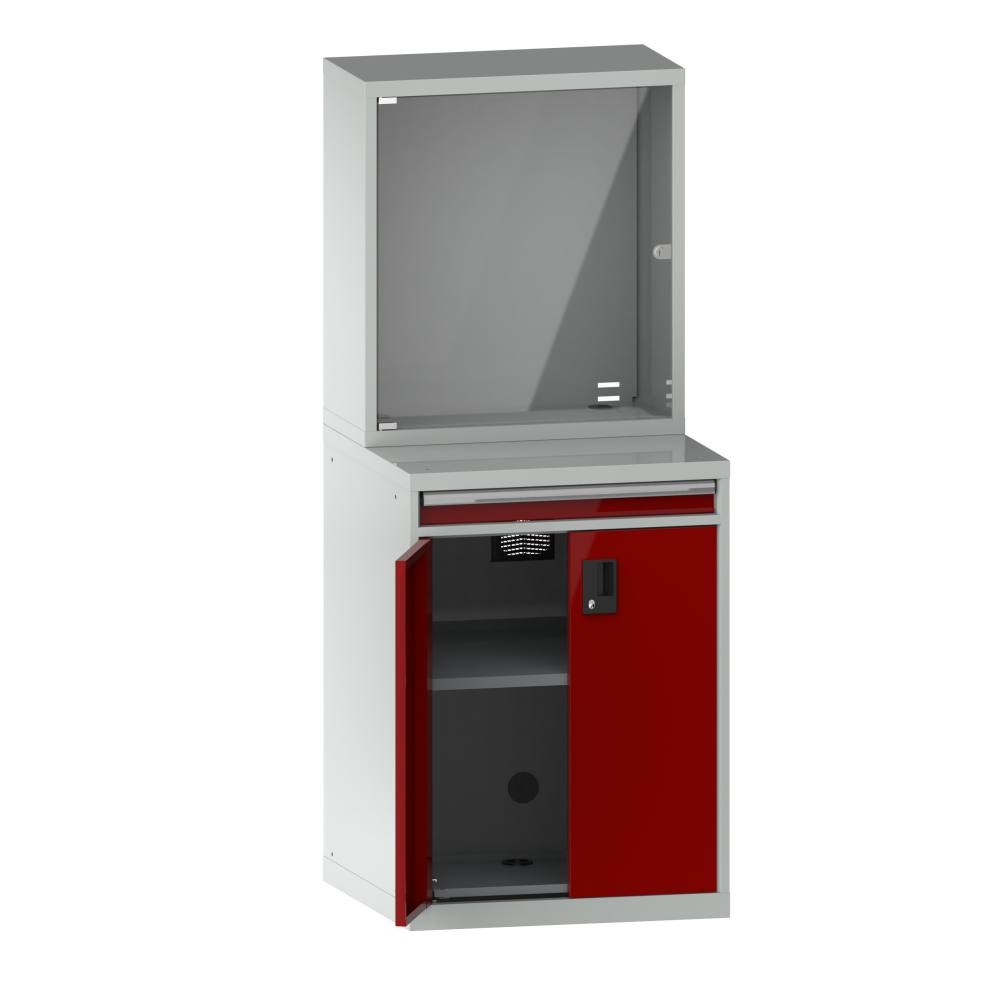 1 casier pour moniteur avec porte battante montée à droite, avec cylindre de fermeture,