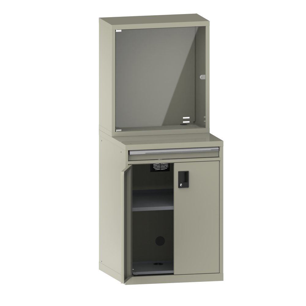 1 casier pour moniteur avec porte battante montée à droite, avec cylindre de fermeture,
