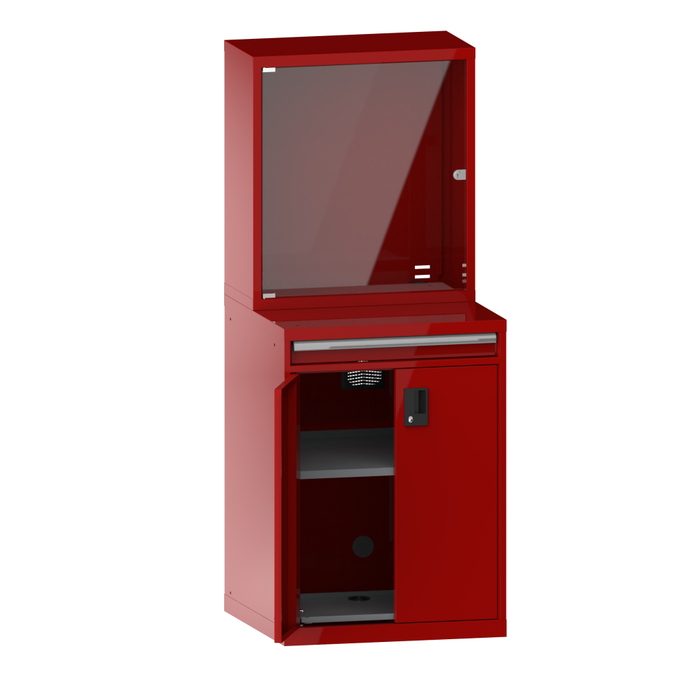 1 casier pour moniteur avec porte battante montée à droite, avec cylindre de fermeture,