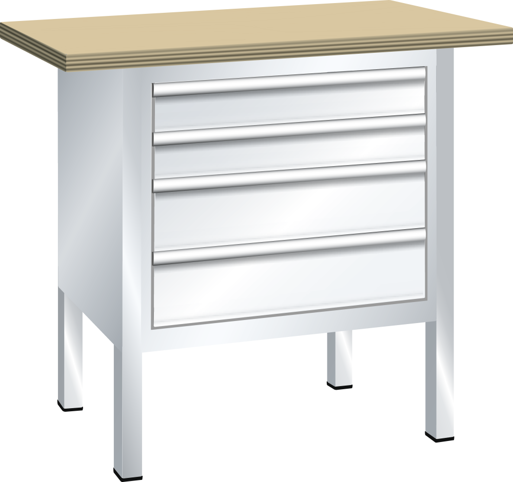 Établi compact (LxPxH) 1000x700x850mm 4 tiroirs, hêtre KEY Lock Blanc pur RAL 9010