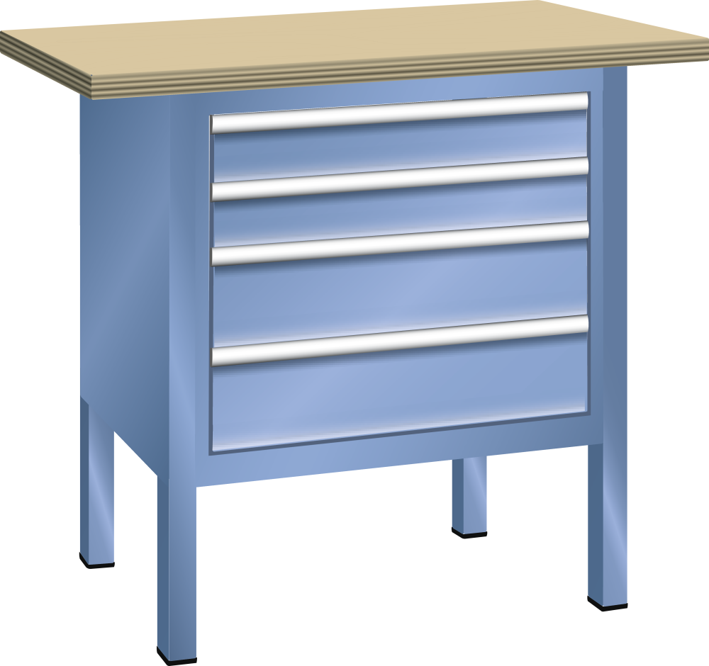 Établi compact (LxPxH) 1000x700x850mm 4 tiroirs, hêtre KEY Lock Bleu outremer RAL 5002