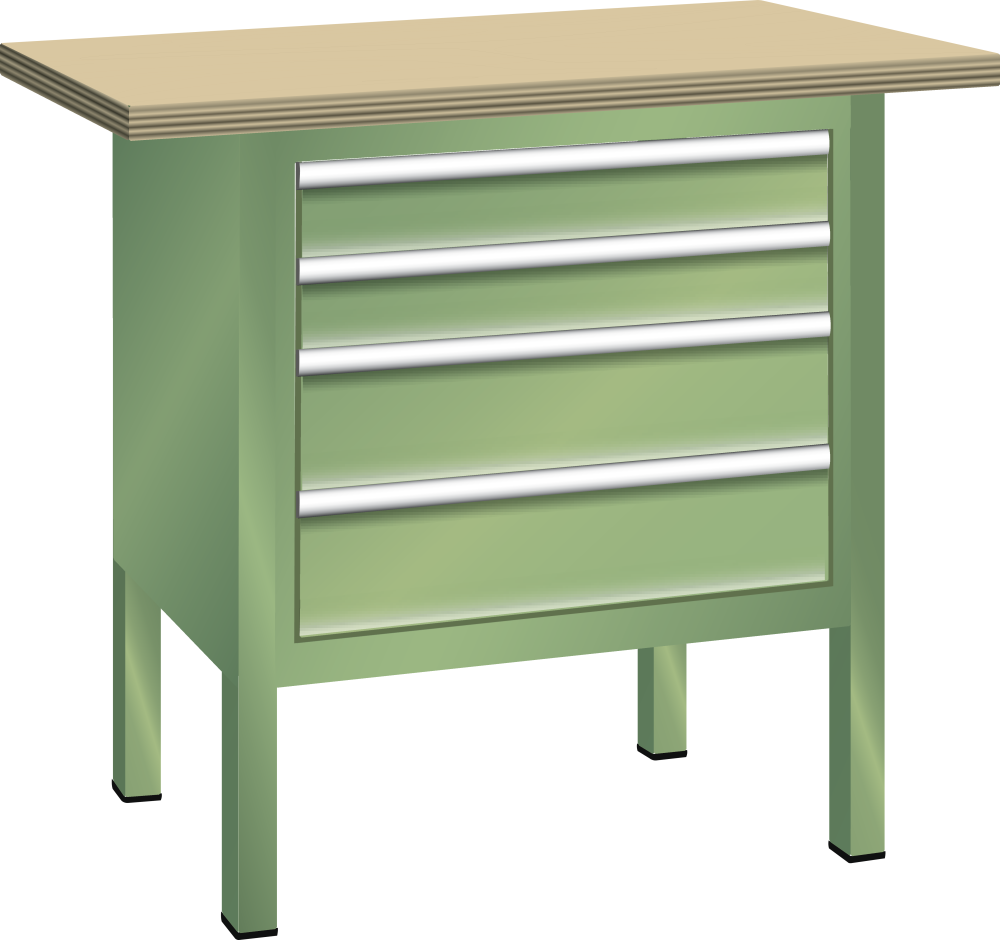 Établi compact (LxPxH) 1000x700x850mm 4 tiroirs, hêtre KEY Lock Vert réséda RAL 6011