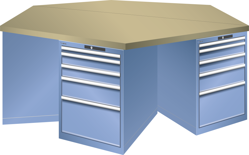 Établi hexagonaux 27x36E (LxPxH) 2500x2165x840mm 6 x 5 tiroirs (1x50/2x100/1x150/1x300) 75kg Multiplex AUTO Lock Bleu outremer RAL 5002