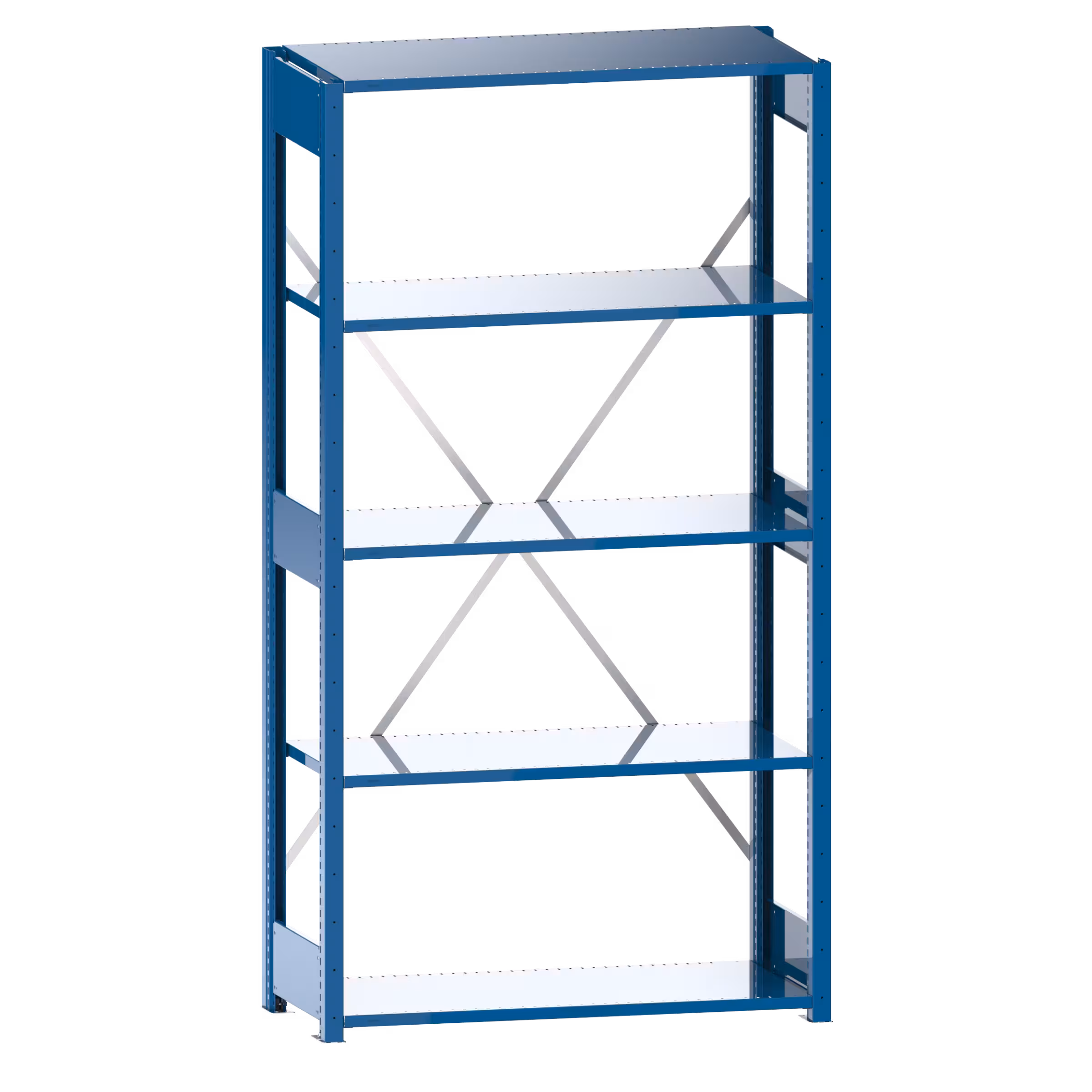 Rayonnage universel L1006 unité de base (LxPxH) 1300x500x2200mm 5 rayons à fentes (160kg) Bleu capri RAL 5019
