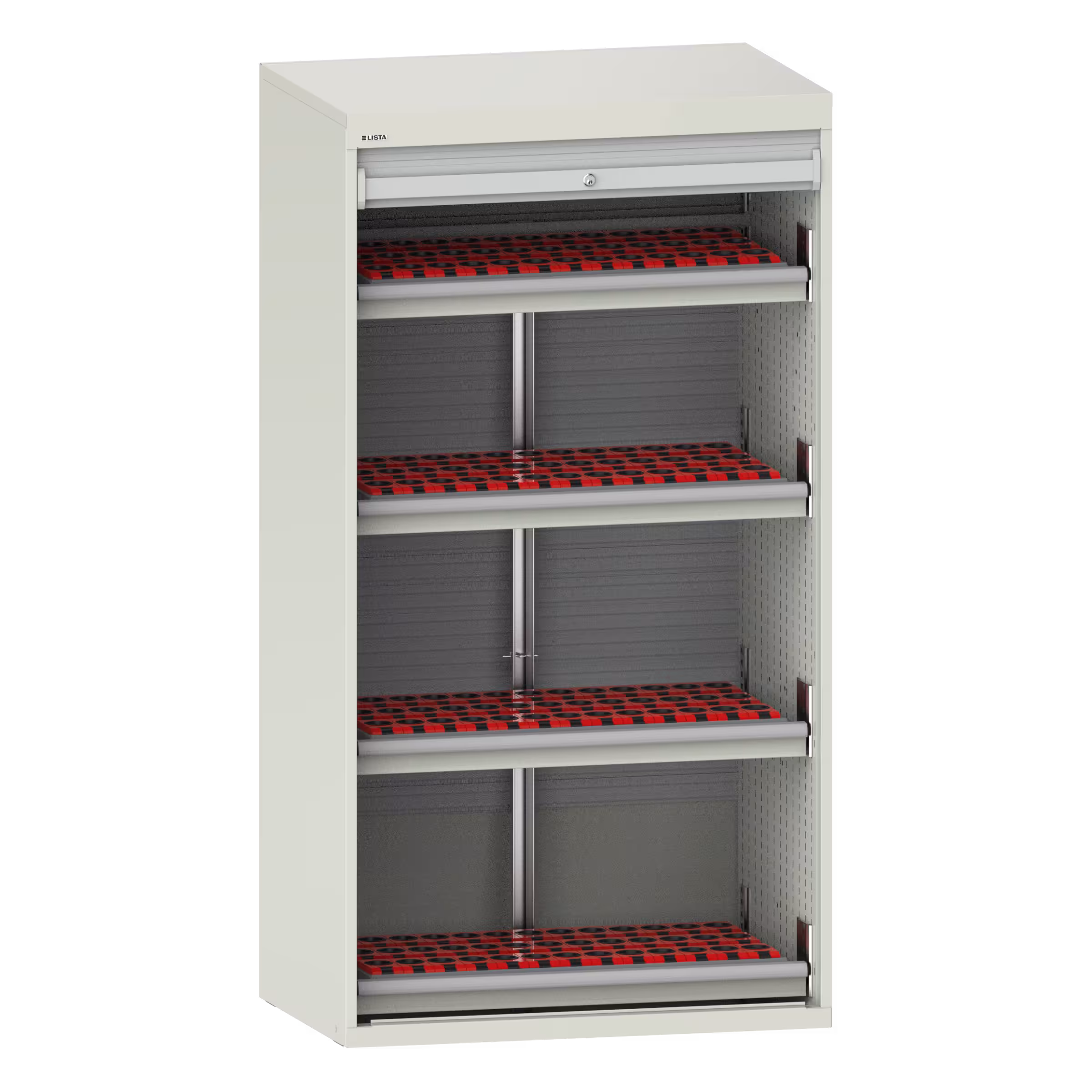 Armadio NC con tapparella 54x27E (LxPxA) 1038x691x1950mm 4 cassetti, 156 supporto portautensili ISO-SK 40 KEY Lock Bianco grigiastro RAL 9002