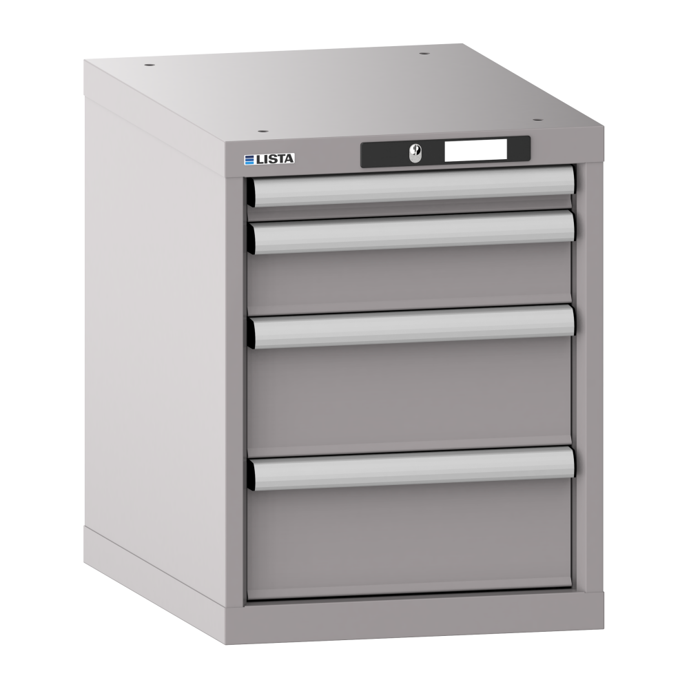 Armadio a cassetti 18x27E (LxPxA) 411x572x533mm 4 cassetti (1x50/1x100/2x150) 75kg AUTO Lock Alluminio grigiastro RAL 9007