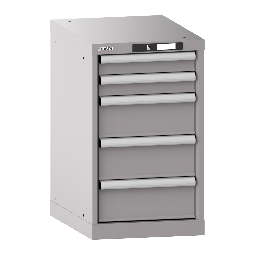 Armadio a cassetti 18x27E (LxPxA) 411x572x700mm 5 cassetti (2x75/3x150) 75kg RFID Lock Alluminio grigiastro RAL 9007