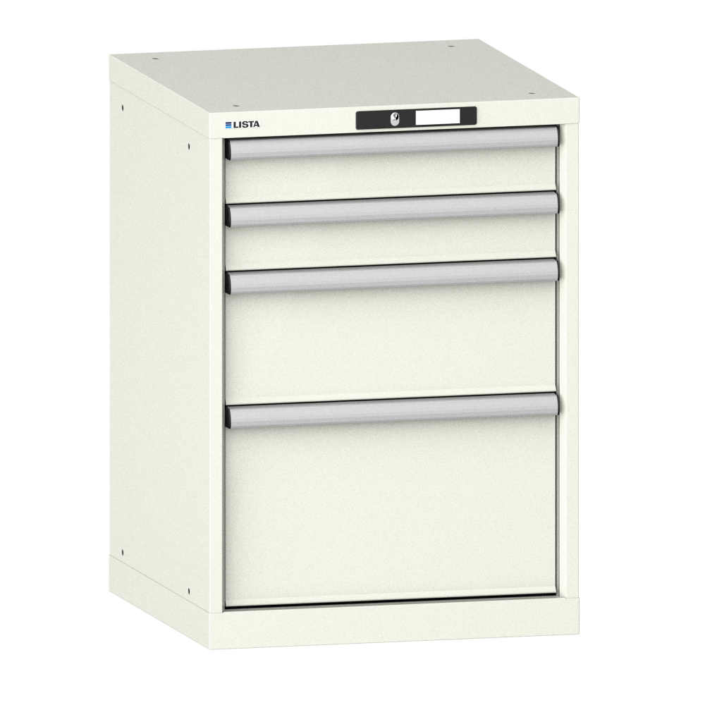 Armadio a cassetti 27x27E (LxPxA) 564x572x800mm 4 cassetti (2x100/1x200/1x300) 75kg AUTO Lock Bianco grigiastro RAL 9002