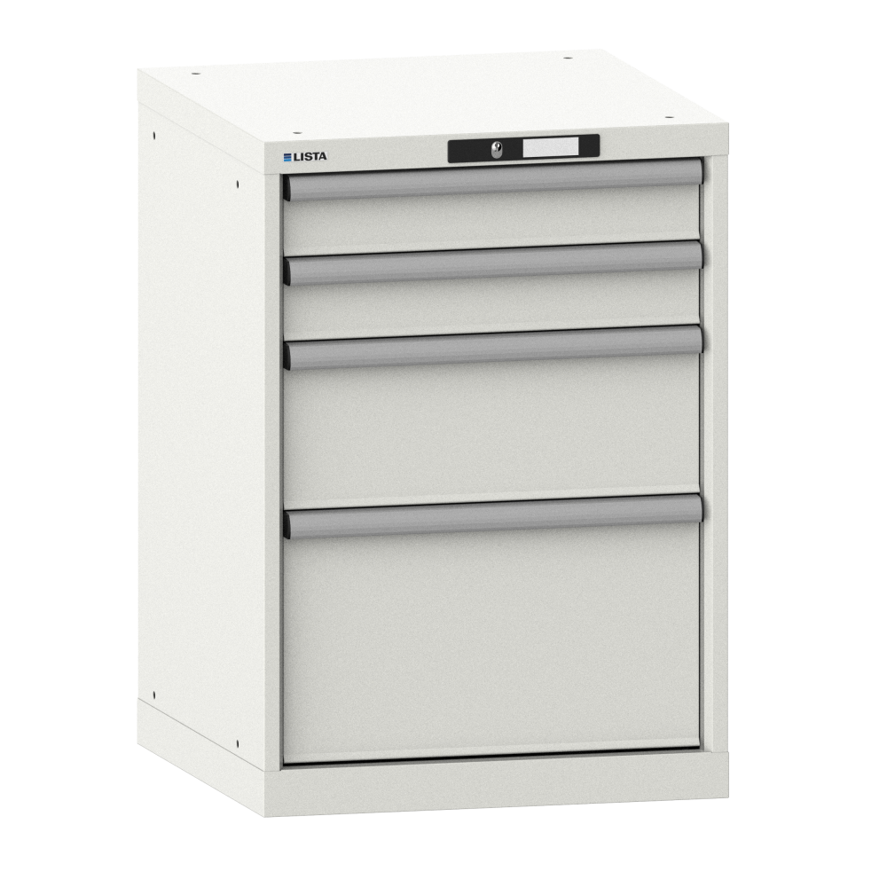 Armadio a cassetti 27x27E (LxPxA) 564x572x800mm 4 cassetti (2x100/1x200/1x300) 75kg AUTO Lock Bianco puro RAL 9010