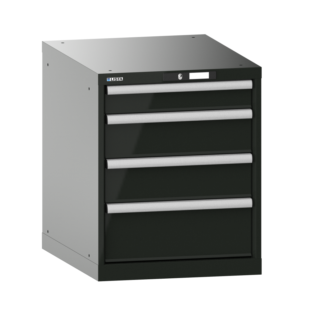 Armadio a cassetti 27x36E (LxPxA) 564x725x700mm 4 cassetti (1x100/2x150/1x200) 75kg AUTO Lock Nero NCS S 9000-N