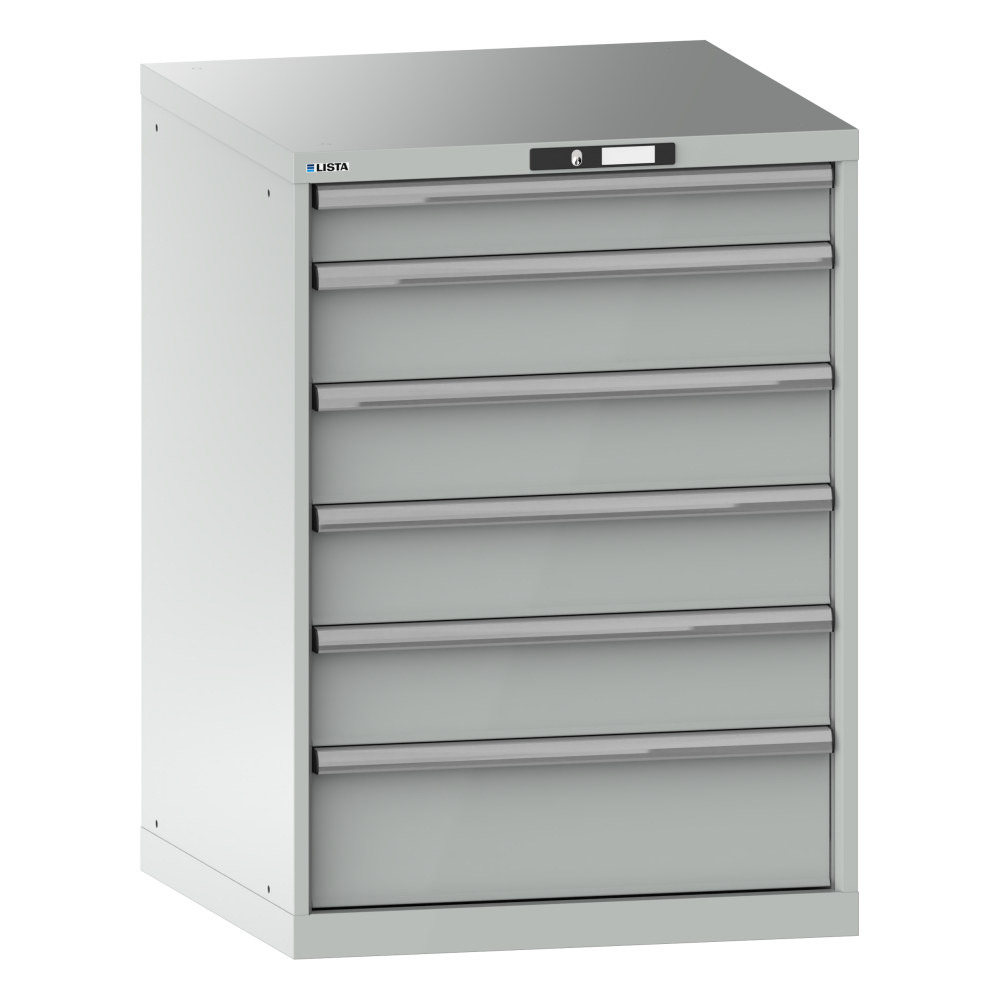 Armadio a cassetti 36x36E (LxPxA) 717x725x1000mm 6 cassetti (1x100/4x150/1x200) 75kg KEY Lock Grigio luce RAL 7035