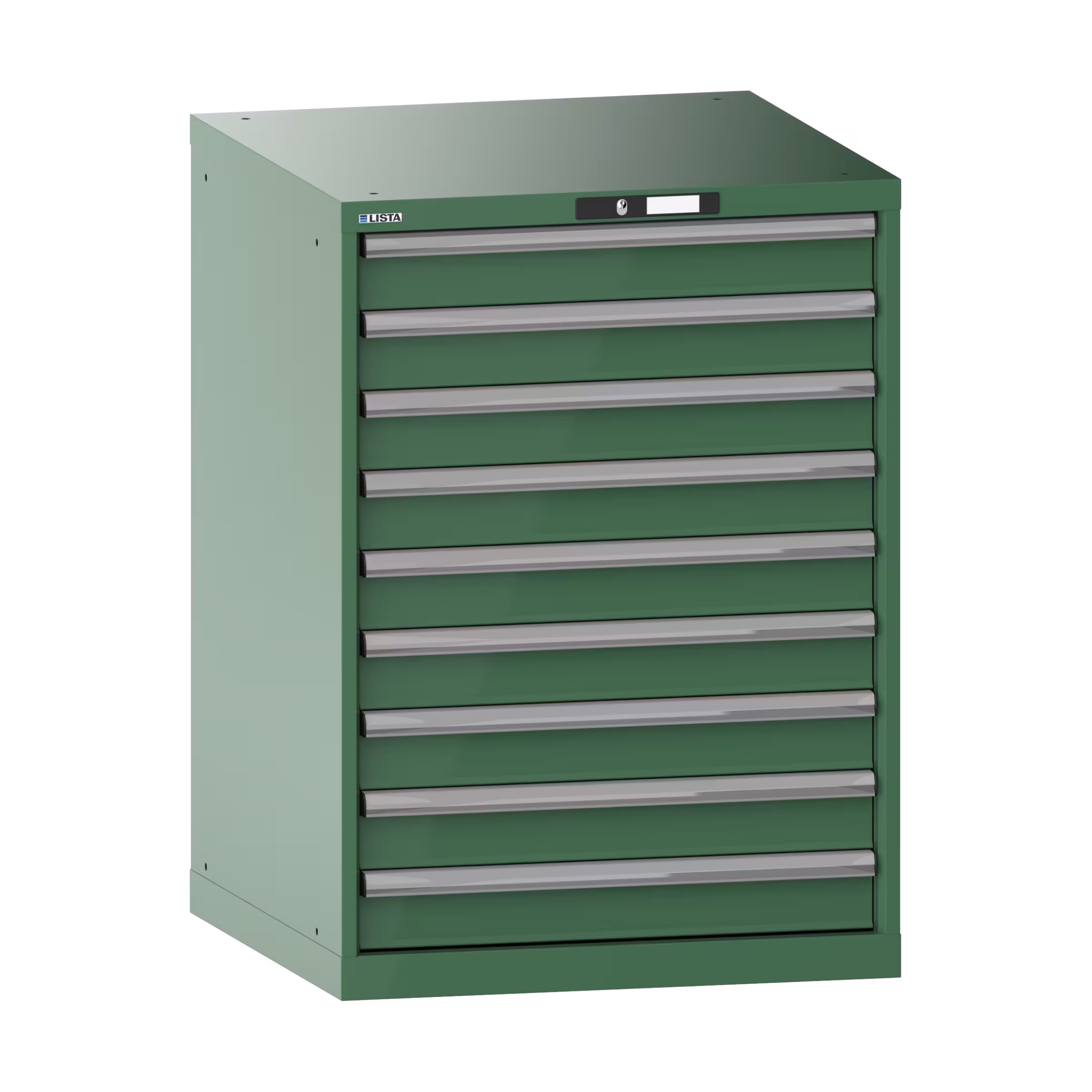 Armadio a cassetti 36x36E (LxPxA) 717x725x1000mm 9 cassetti (9x100) 75kg KEY Lock Verde reseda RAL 6011