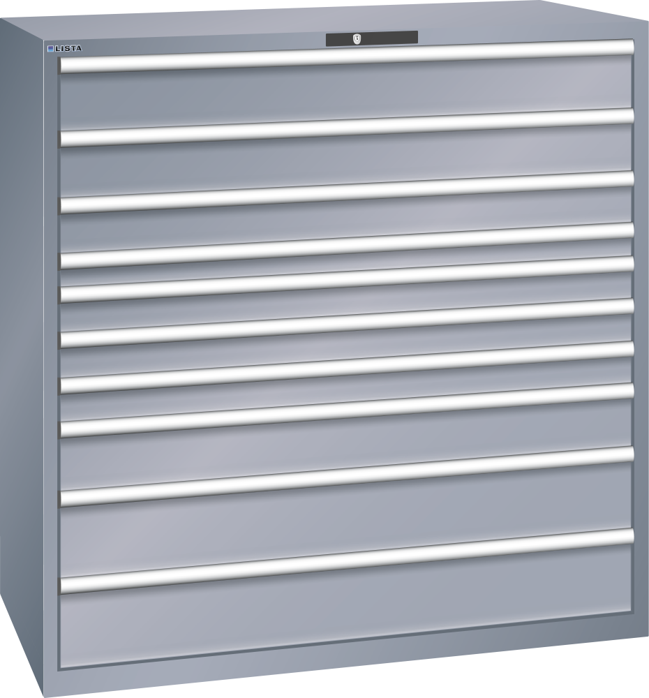 Armadio a cassetti 78x36E (LxPxA) 1431x725x1450mm 10 cassetti (2x150/1x125/1x75/3x100/1x150/2x200) 200kg RFID Lock Alluminio brillante RAL 9006