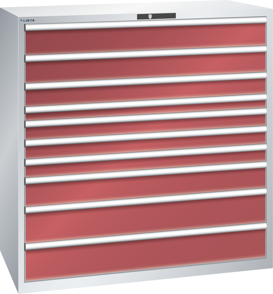 Armadio a cassetti 78x36E (LxPxA) 1431x725x1450mm 10 cassetti (2x150/1x125/1x75/3x100/1x150/2x200) 200kg RFID Lock Grigio luce RAL 7035 / Rosso rubino RAL 3003