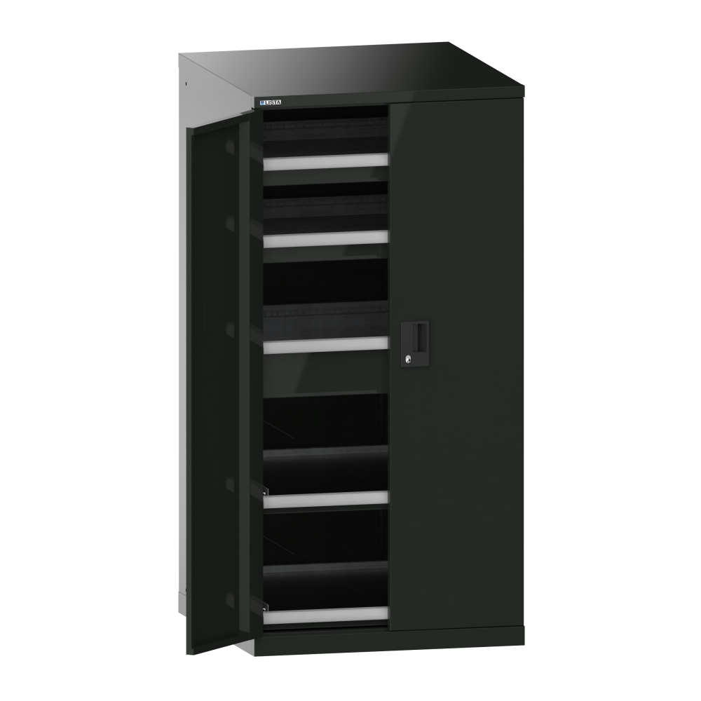Armadio a cassetti con ante a battente 36x36E (LxPxA) 717x753x1450mm 3 cassetti (75kg), 2 ripiani estraibili (75kg) KEY Lock Nero NCS S 9000-N