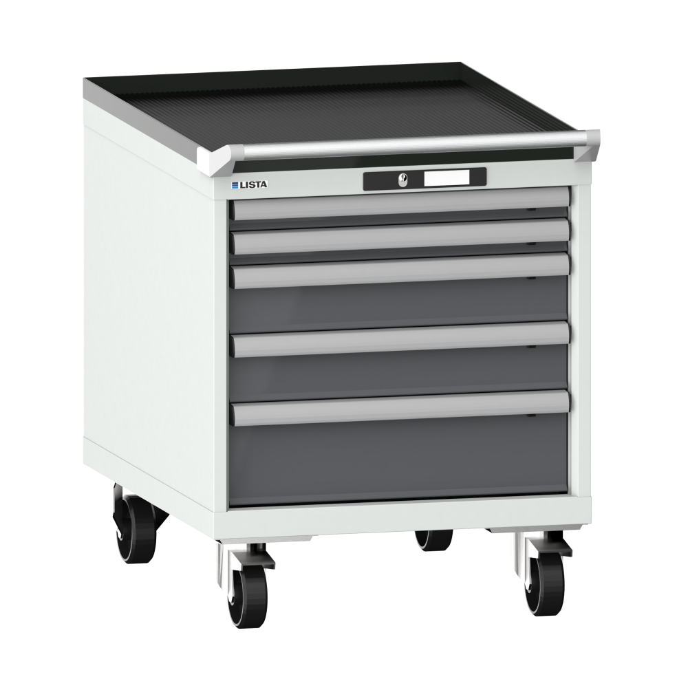 Armadio a cassetti su ruote 27x36E (LxPxA) 564x725x723mm 5 cassetti (2x50/2x100/1x150) 75kg ruote in nylon Ø100mm KEY Lock Grigio luce RAL 7035 / Grigio metallico NCS S 6502-B