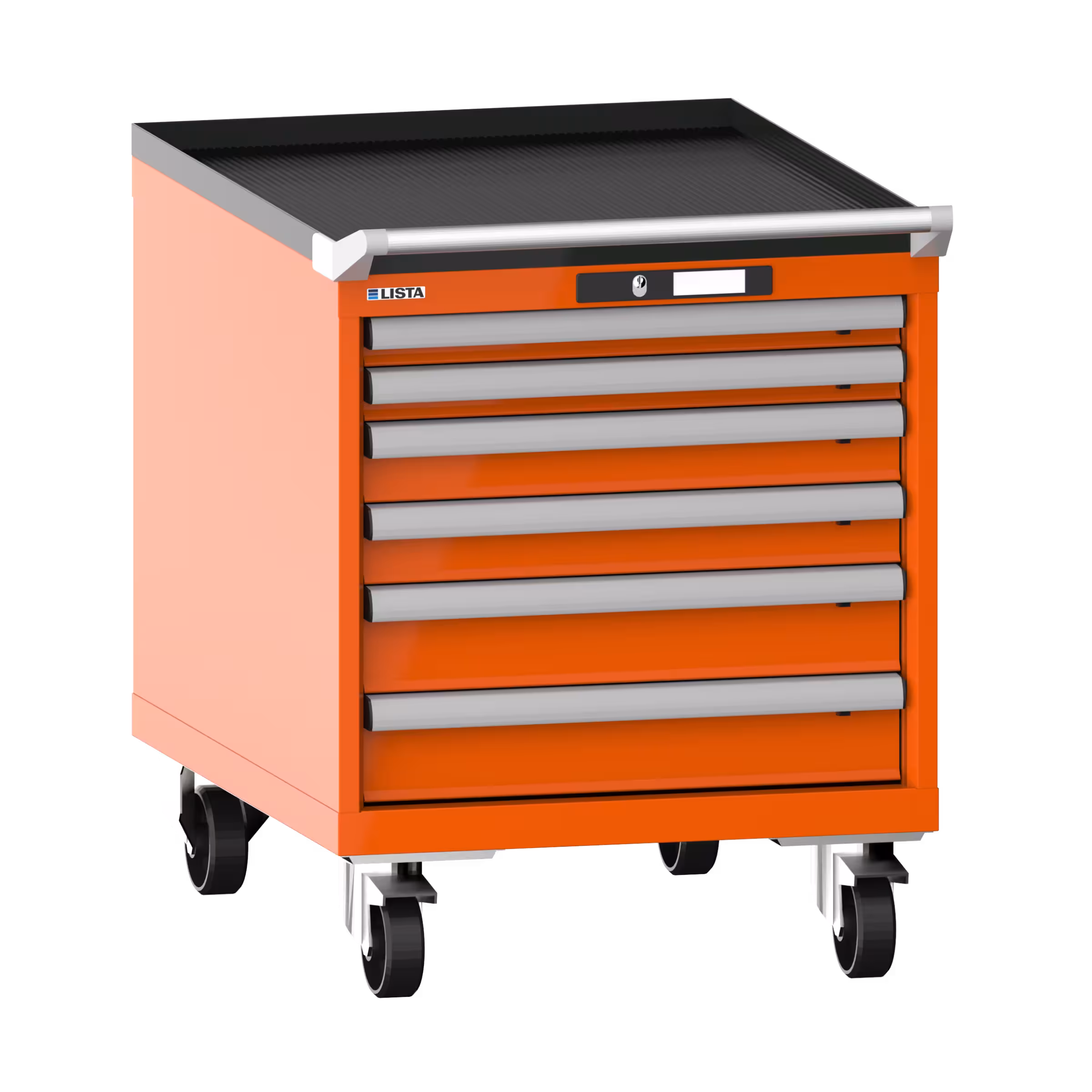 Armadio a cassetti su ruote 27x36E (LxPxA) 564x725x723mm 6 cassetti (2x50/2x75/2x100) 75kg ruote in nylon Ø100mm KEY Lock Arancione RAL 2004