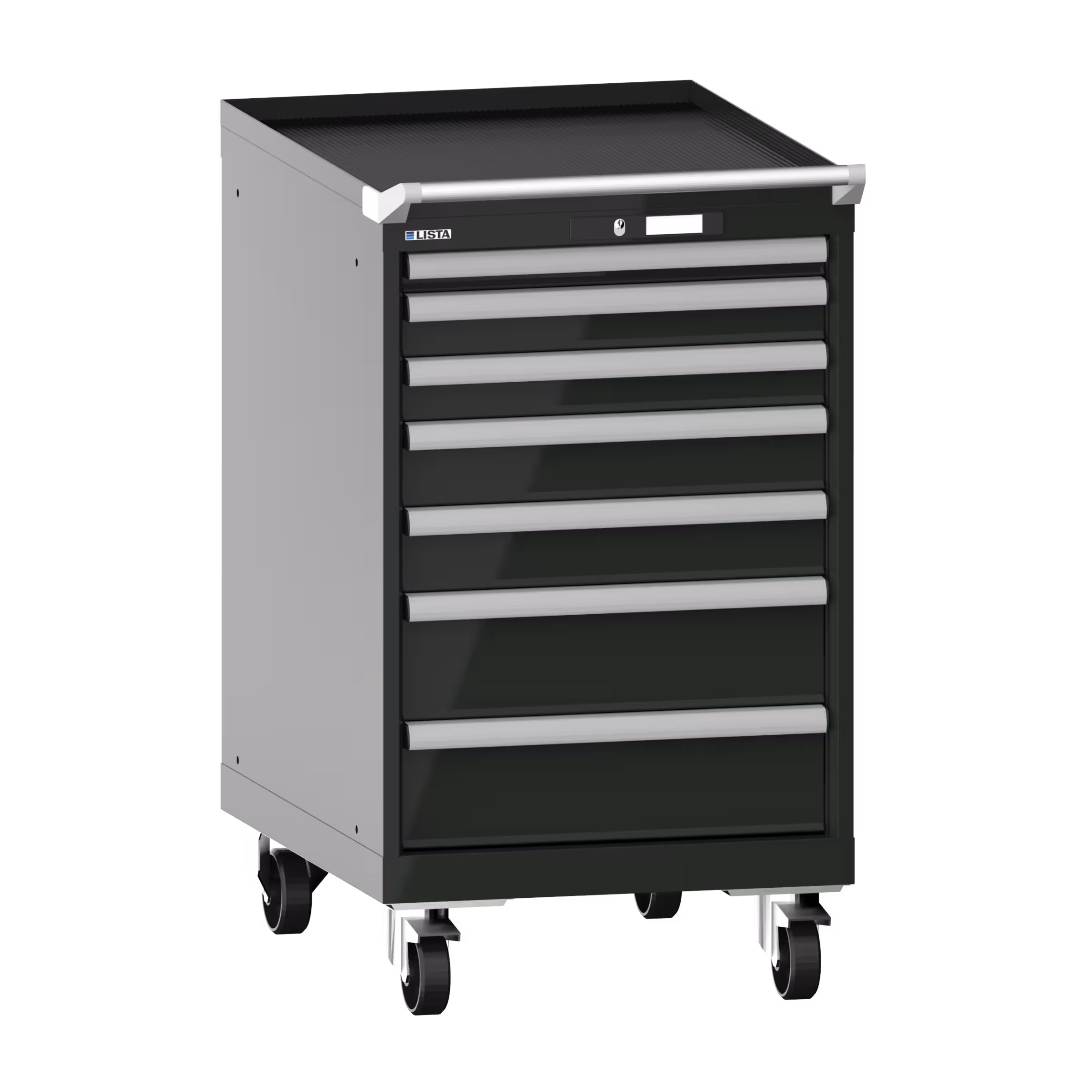 Armadio a cassetti su ruote 27x36E (LxPxA) 564x725x990mm 7 cassetti (1x50/2x75/2x100/2x150) 75kg ruote in nylon Ø100mm RFID Lock Nero NCS S 9000-N
