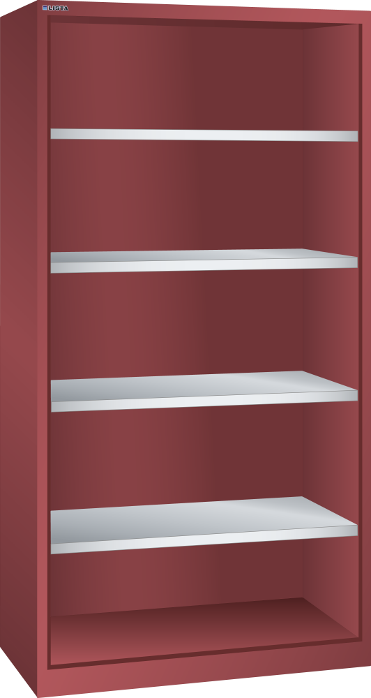 Armadio alto aperto (LxPxA) 1000x400x1950mm 4 ripiani spostabili, senza chiusura, Rosso fuoco RAL 3000