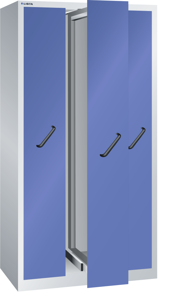 Armadio con cassetti senza ripiani e pareti forate verticali con frontali (LxPxA) 1000x695x1950mm 3 cassetti senza ripiani e pareti forate Grigio luce RAL 7035 / Blu brillante RAL 5007