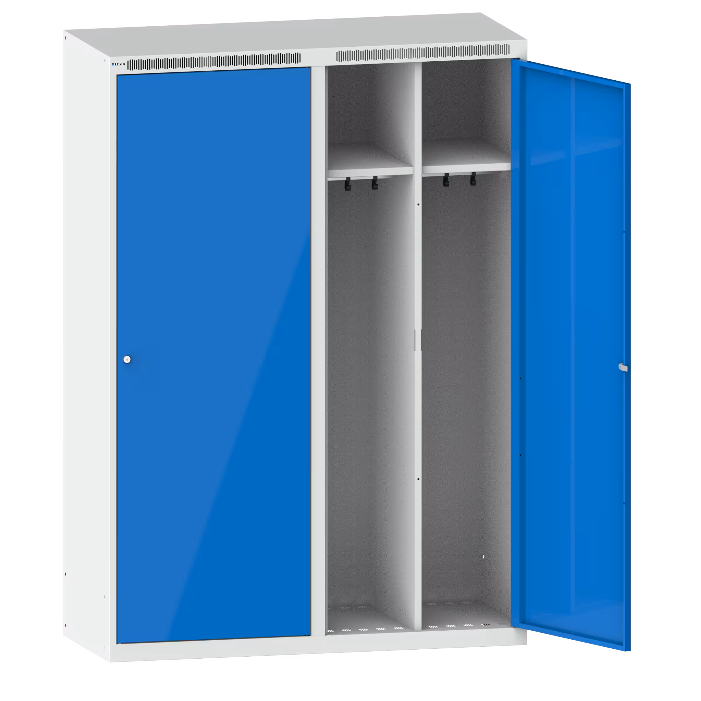 Armadio guardaroba (LxPxA) 1200x500x1700mm 4 scomparti sensa sottostruttura, anta liscio, KEY Lock Grigio luce RAL 7035 / Blu cielo RAL 5015