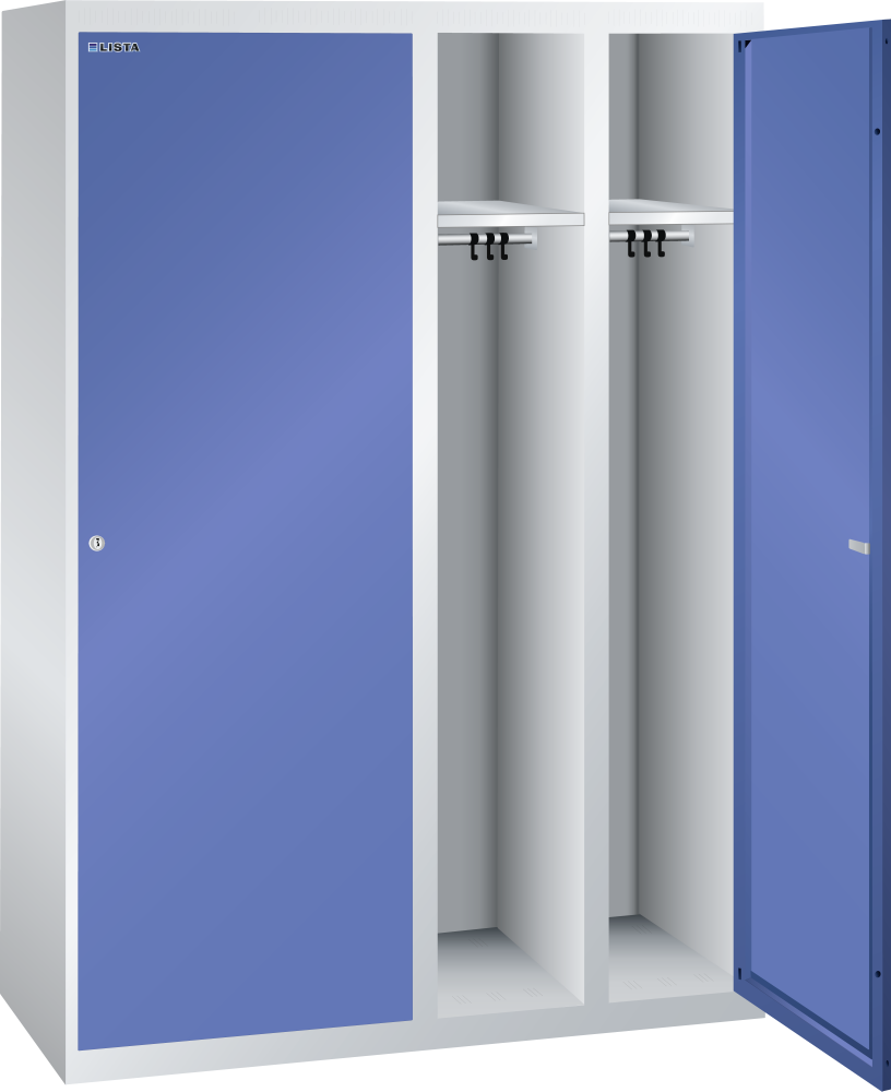 Armadio guardaroba (LxPxA) 1200x500x1700mm 4 scomparti sensa sottostruttura, anta liscio, dispositivo di chiusura Grigio luce RAL 7035 / Blu segnale RAL 5005
