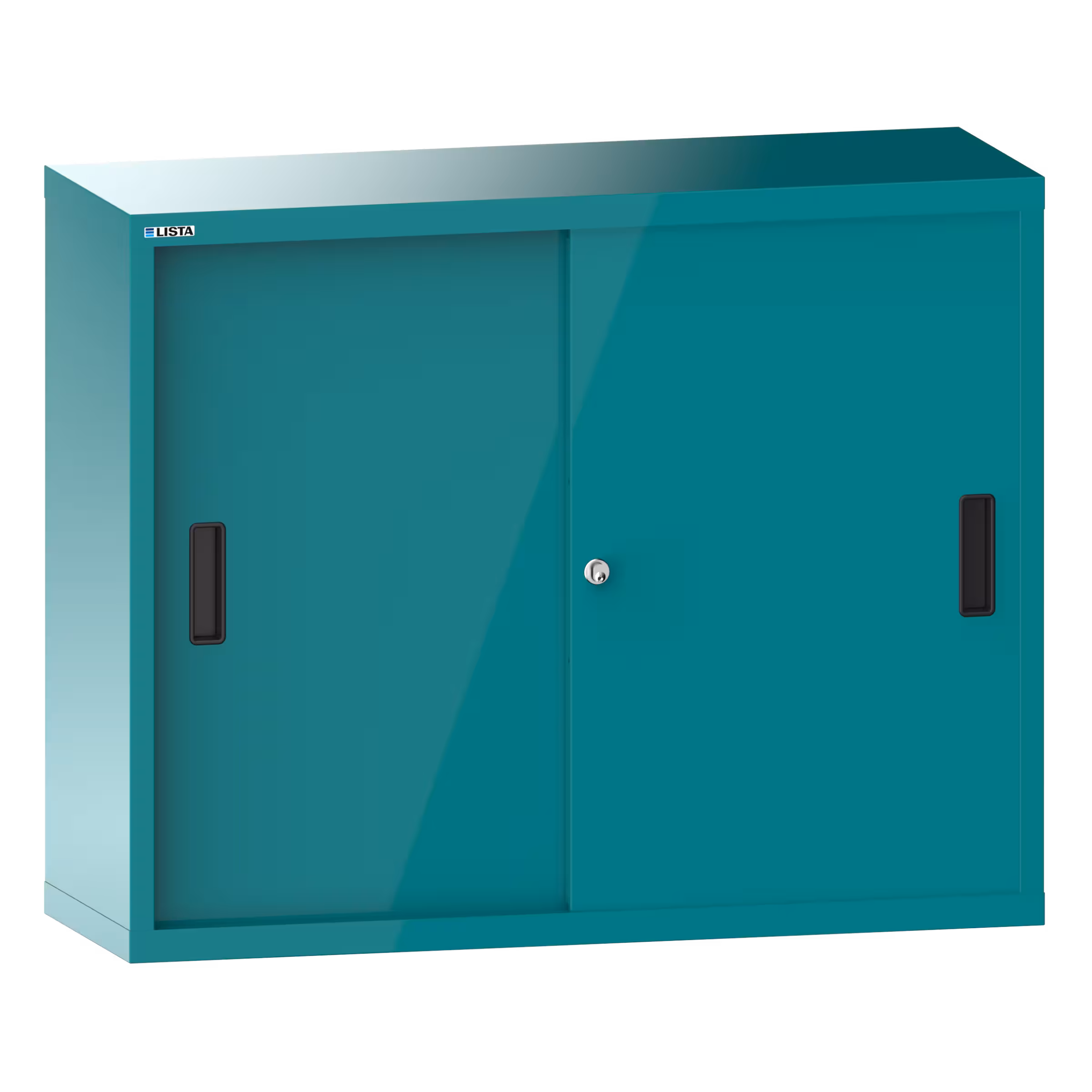 Armadio pensile con ante scorrevoli in lamiera piena (LxPxA) 1000x350x800mm incl. materiale di fissaggio per il parete posteriore perforato sul columna de soporte, KEY Lock Blu turchese RAL 5018