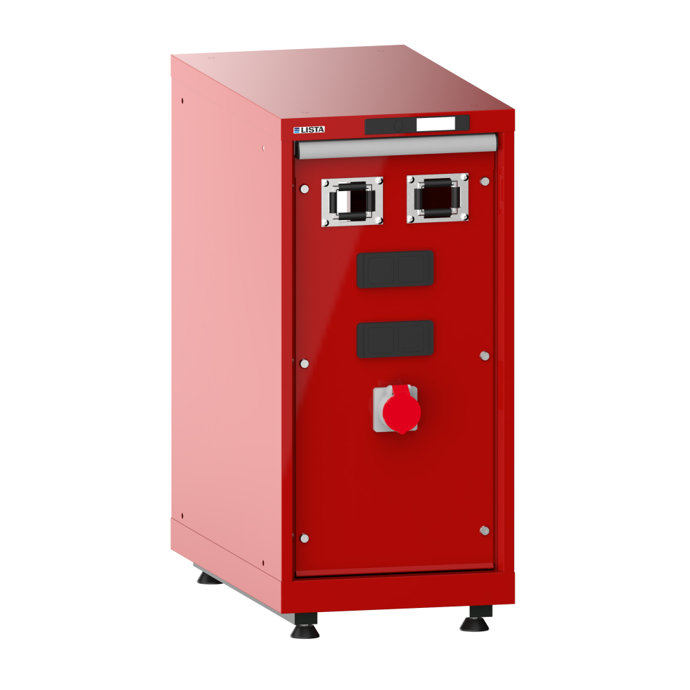 Armadio per erogazione di mezzi Compact: adatto per il montaggio di avvolgitori di tubi flessibili per aria compressa e corrente. Progettato per la successiva installazione di 2 moduli di alimentazione. Incl. presa da 400V. Indicazione: nessuna vasca di sgocciolamento in quanto non è assolutamente ammesso avere corrente e mezzi fluidi nello stesso armadio.