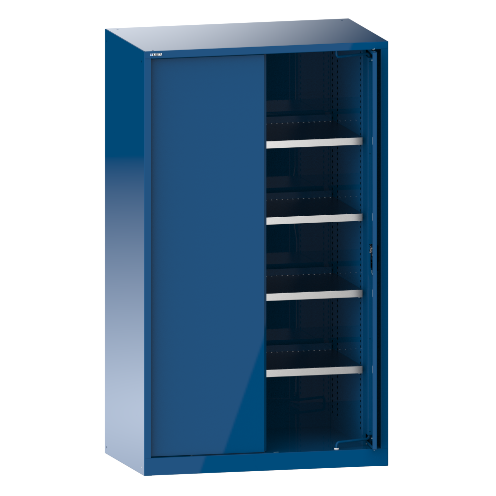 Armadio per merci pesanti con 2 ante a scomparsa in lamiera piena 54x27E (LxPxA) 1146x690x1950mm 4 ripiani spostabili RFID Lock Blu genziana RAL 5010