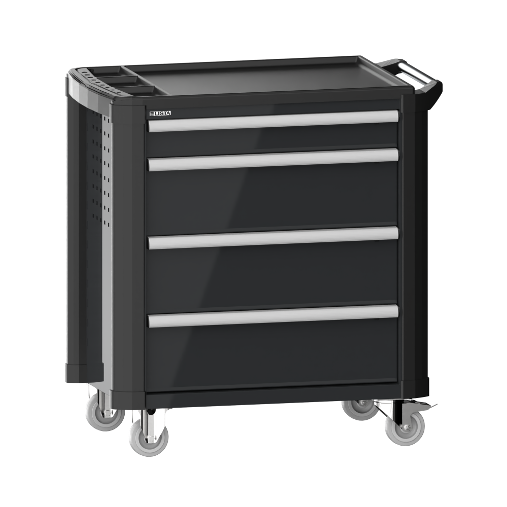 Carrello per utensili 36x27E (LxPxA) 894x525x928mm 5 cassetti (1x100/3x200) 40kg con copertura in plastica e para spigoli cricchetto singolo a destra KEY Lock Grigio antracite RAL 7016
