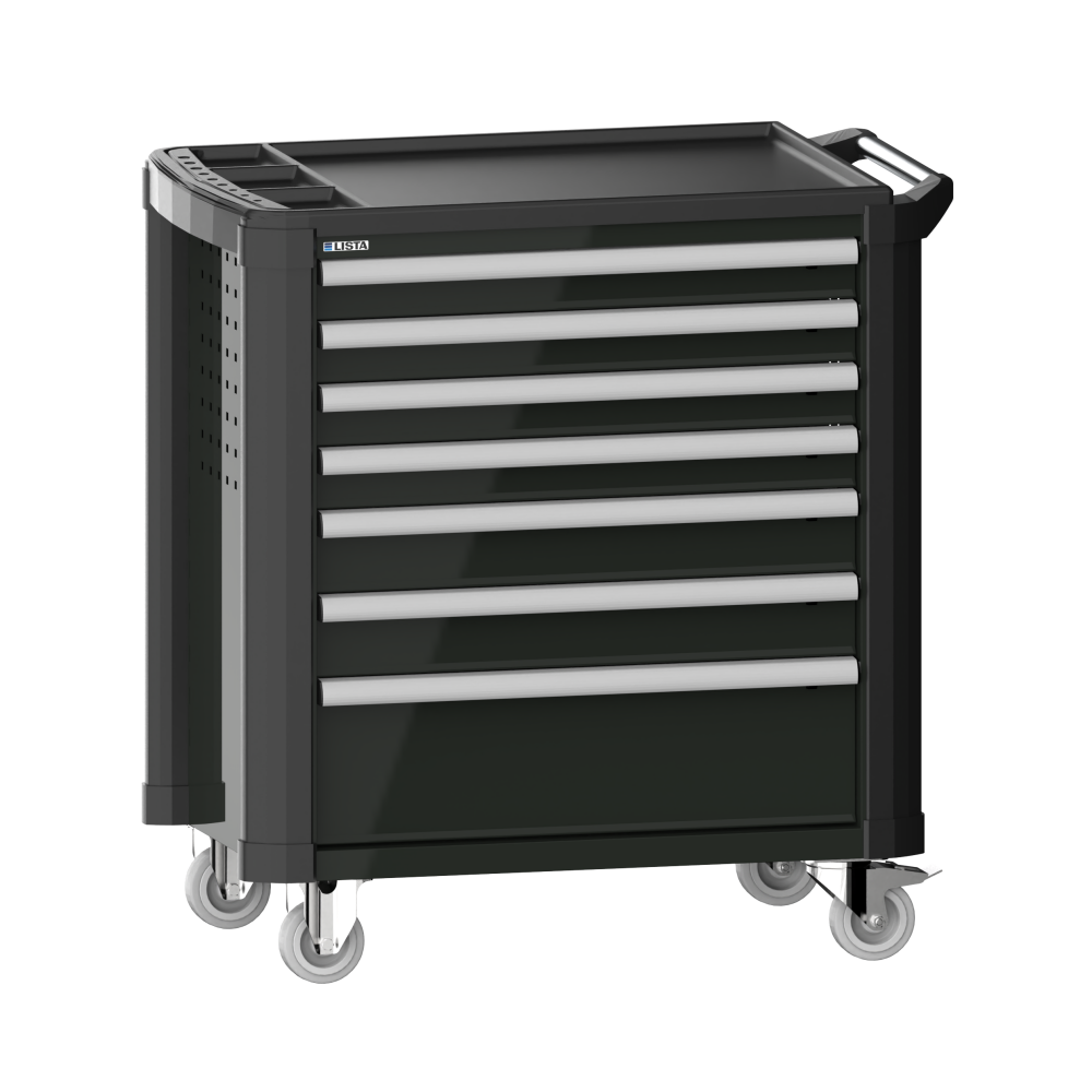 Carrello per utensili 36x27E (LxPxA) 894x525x928mm 7 cassetti (4x75/2x100/1x200) 40kg con copertura in plastica e para spigoli cricchetto singolo a destra KEY Lock Nero NCS S 9000-N