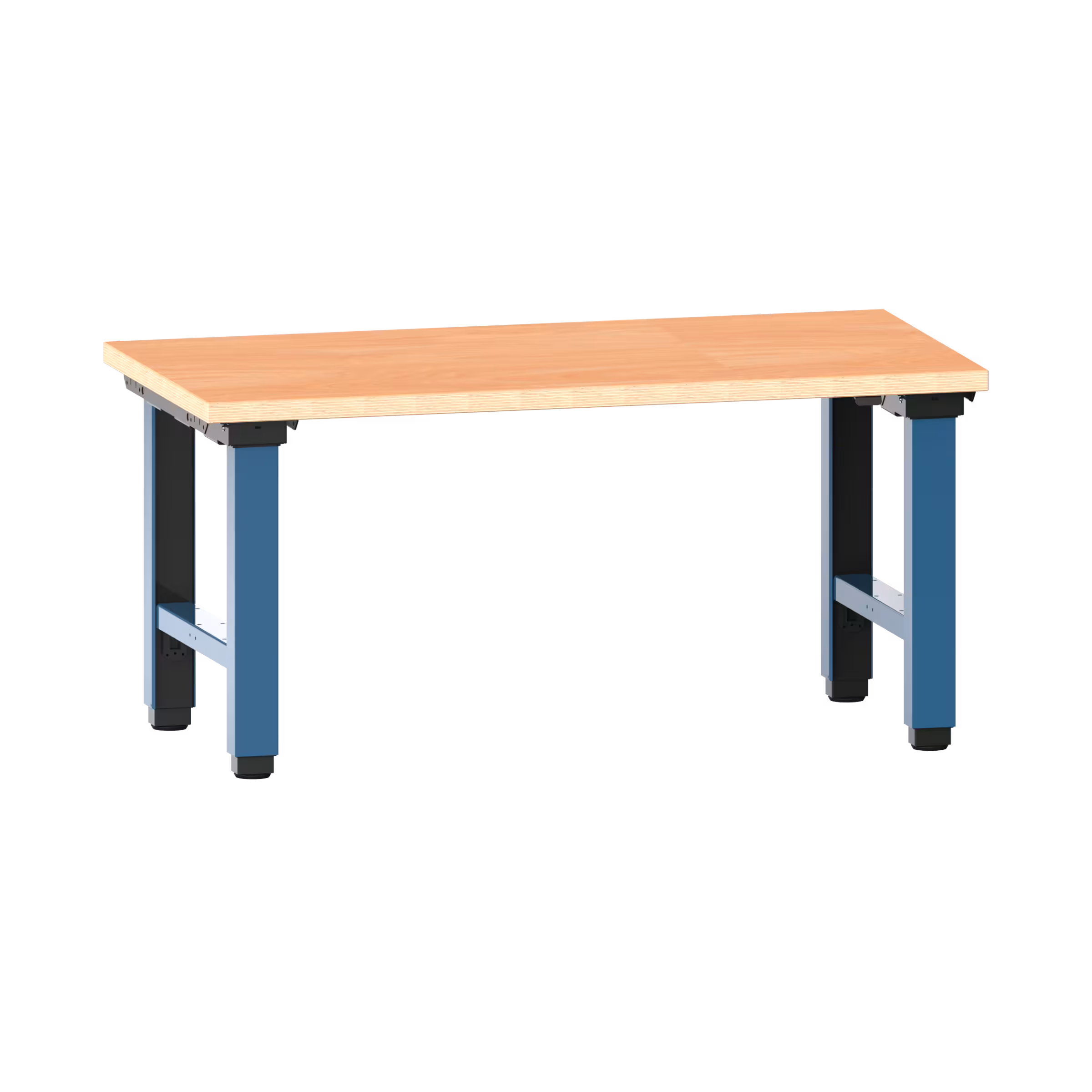 Posto di lavoro Quattro completo (LxPxA) 1500x750x715-1215mm per profondità moduli 675mm regolabile elettricamente in altezza tipo Euro (CH/D/F) Multiplex Blu brillante RAL 5007