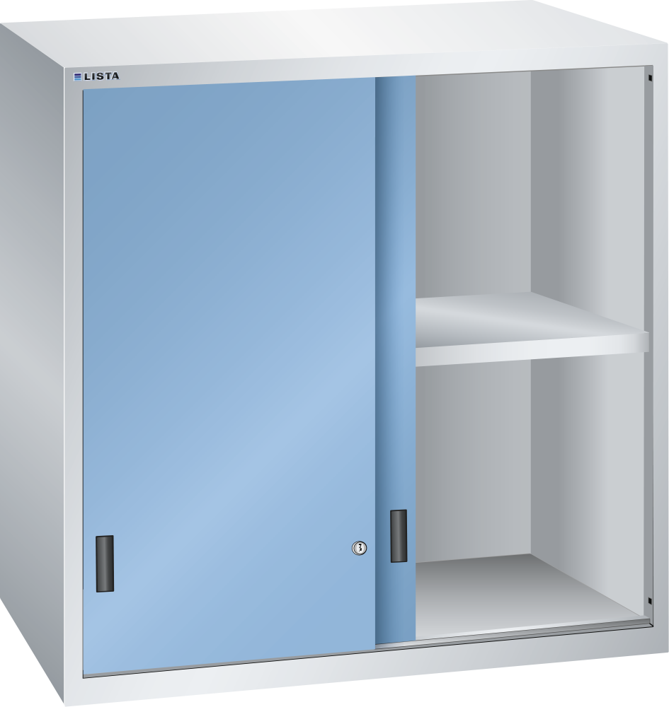 Sopralzo con ante scorrevoli in lamiera piena 54x36E (LxPxA) 1023x725x1000mm KEY Lock Grigio luce RAL 7035 / Blu luce RAL 5012